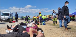 Simulacro de accidente en el aeropuerto para coordinar los servicios implicados...